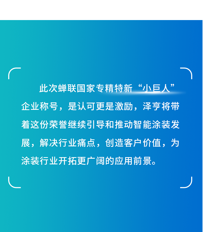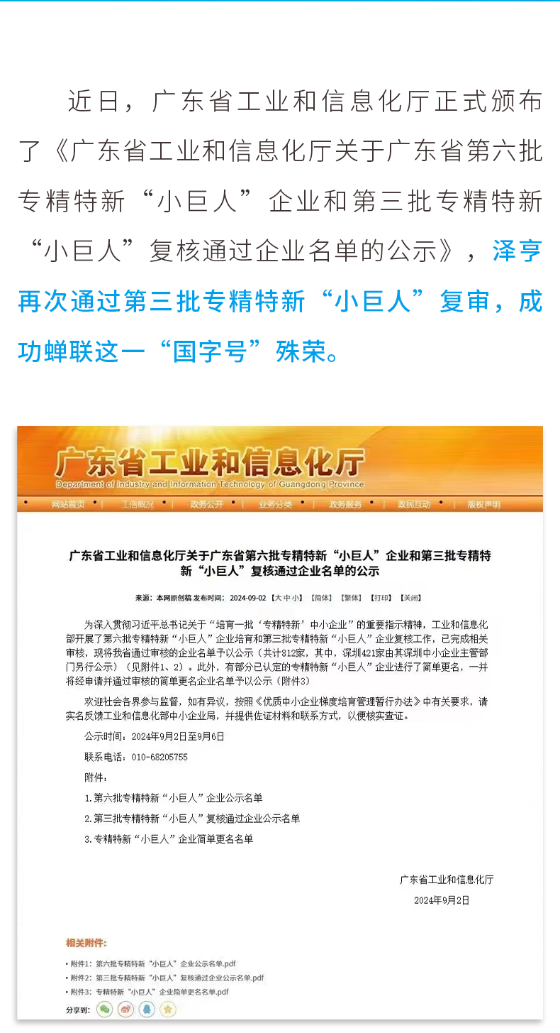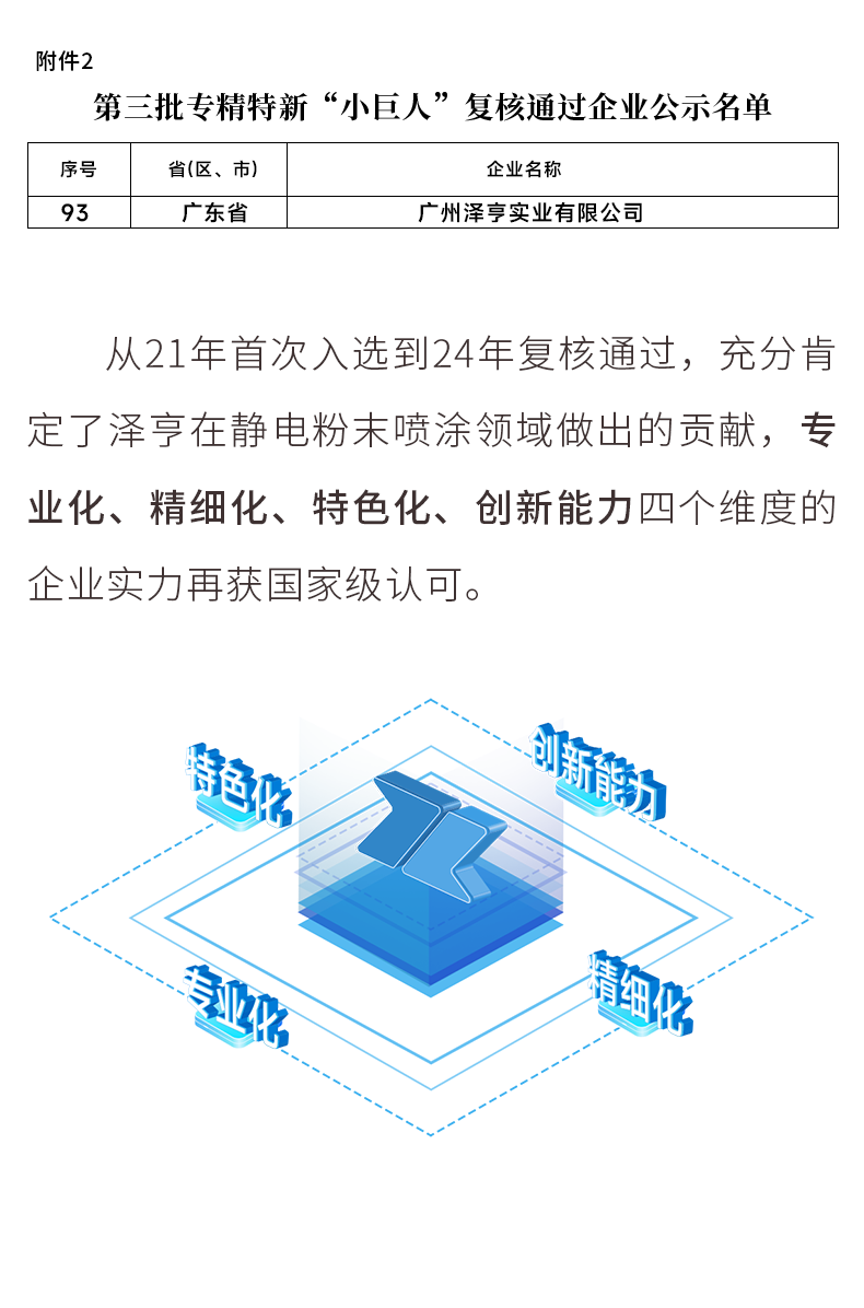 喜报!泽亨顺利通过第三批专精特新“小巨人”企业复审 更新日期:2024-10-22 14:40:51|返回|关闭 字体大小:小中大 上一篇:泽亨2025新品发布会|新产品·新基地·新征程,邀您共鉴全新之姿 下一篇:邀请函 │ 泽亨与您相约2024中国国际铝工业展,共探铝材新“涂”景 此文关键字: 推荐阅读 涂装世界 智赢未来 | SFCHINA2018国际表面处理展中的广州泽亨 匠心专注涂装人 | 热烈祝贺东莞中集KTL涂装线第十万台下线 载梦启航,竭力奋进 | 2019年广州泽亨实业有限公司开工大吉 匠心专注涂装人 | 2019年涂装技术培训班·广东站圆满结束 Technical Training | 2019年涂装技术培训班·广东站 2018年广州国际表面处理展 未来可期----二零一八年十一月份分享会 热烈欢迎南沙区工科信局领导莅临参观指导